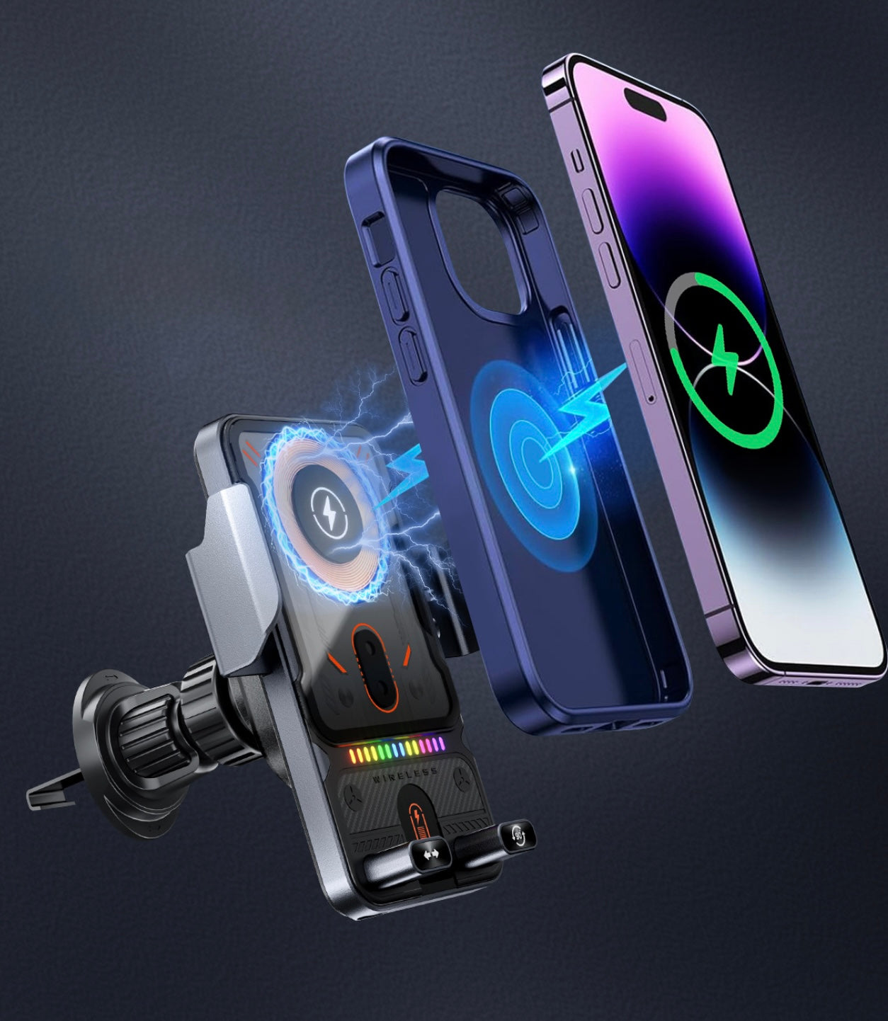 Pensé pour s’intégrer harmonieusement à tout intérieur de véhicule, ce support au style futuriste et aux finitions métalliques soignées allie solidité et élégance. Sa rotation à 90° permet d’adapter facilement l’angle de vue, en mode portrait ou paysage, selon vos besoins. Durable, pratique et compatible avec tous les modèles de smartphones à charge sans fil, le Support Digital 3-en-1 s’impose comme un accessoire incontournable pour un usage quotidien à la fois confortable et moderne.